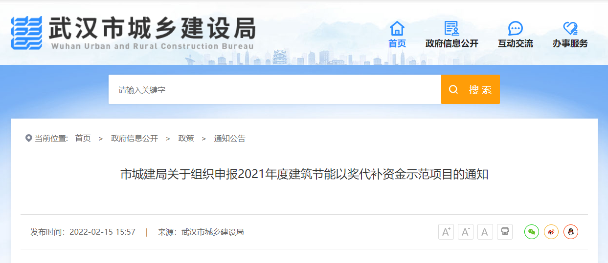為加快推進(jìn)生態(tài)文明建設(shè),落實(shí)綠色發(fā)展理念,提升建筑節(jié)能水平,根據(jù)《湖北省建筑節(jié)能以獎(jiǎng)代補(bǔ)資金管理辦法》(鄂財(cái)建發(fā)〔2017〕37號(hào))、《武漢市省級(jí)建筑節(jié)能以獎(jiǎng)代補(bǔ)資金使用管理辦法》(武城建〔2020〕38號(hào)),決定開(kāi)展2021年度建筑節(jié)能以獎(jiǎng)代補(bǔ)資金示范項(xiàng)目申報(bào)工作,現(xiàn)將有關(guān)事宜通知如下: