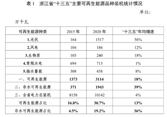 "十三五"以來,我省高度重視可再生能源發(fā)展,并取得顯著成績(jī)。截至 2020 年底,全省可再生能源裝機(jī)容量達(dá)到 3114 萬千瓦,其中光伏1517萬千瓦(分布式 1070 萬千瓦),常規(guī)水電 713 萬千瓦,抽水蓄能 458萬千瓦,生物質(zhì)發(fā)電 240萬千瓦(垃圾發(fā)電 210 萬千瓦),風(fēng)電 186 萬千瓦(海上風(fēng)電 45 萬千瓦),可再生能源裝機(jī)占比達(dá)到 30.7%。
