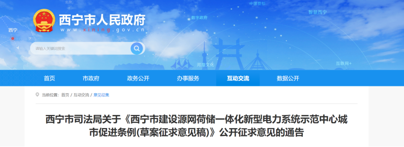 6月27日,青海西寧市司法局發(fā)布關(guān)于《西寧市建設(shè)源網(wǎng)荷儲一體化新型電力系統(tǒng)示范中心城市促進條例(草案征求意見稿)》公開征求意見的通告。