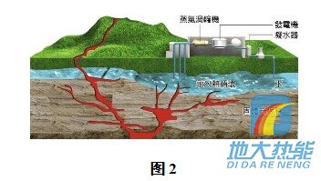 1)熱干巖過(guò)程法.與那些只從火山活動(dòng)頻繁地區(qū)的溫泉中提取熱能的方法相比,熱干巖過(guò)程法將不受地理?xiàng)l件限制,可以在任何地方進(jìn)行熱能開(kāi)采.首先將水通過(guò)壓力泵壓入地下4~6 km深處,此處巖石層的溫度大約在200℃左右.水在高溫巖石層被加熱后,通過(guò)管道加壓被提取到地面并輸入到熱交換器中,熱交換器推動(dòng)汽輪發(fā)電機(jī)將熱能轉(zhuǎn)化成電能.同時(shí)推動(dòng)汽輪機(jī)工作的熱水經(jīng)冷卻后可重新輸入地下供循環(huán)使用.這種地?zé)岚l(fā)電的成本與其他再生能源的發(fā)電成本相比是有競(jìng)爭(zhēng)力的,而且這種方法在發(fā)電過(guò)程中不產(chǎn)生廢水、廢氣等污染,所以它是一種未來(lái)的新能源.