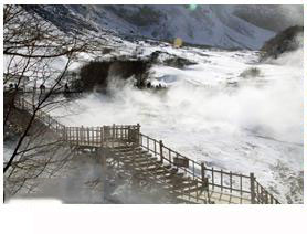 | 聚龍泉位于長白山北坡,大約距長白瀑布900米的地方,在10Cm平方米的地域,有30多眼泉水噴涌而出,經(jīng)科學(xué)工作者測定,水溫最高可達82℃。這里,不論冬夏,總是熱氣蒸騰,霧氣繚繞,特別是嚴寒的冬季,在皚皚白雪的襯托下,溫泉更是云遮霧障,猶如神秘的仙境。溫泉附近長年沉淀下來的礦物質(zhì),有紅、褚、黃、青、綠等等顏色,好似美麗的陶瓷。一種清淡的硫磺味在空氣中飄浮。還有珍珠似的氣泡冒出水面,吐出開鍋似的聲音。 如果細心觀察,溫泉附近的草還是鮮活翠綠的!只要游人高興,還可以在大雪紛飛中露天野浴,實在是妙趣橫生。 |