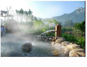 河南省欒川九龍山溫泉風(fēng)景九龍山溫泉時(shí)流量56噸,常年恒溫69.5℃,內(nèi)含鉀、鈉、鈣、鎂、鋰、鍶、碳酸根等27種有益元素,另外含有鈾、氡兩種弱放射性元素,為氟硅復(fù)合型醫(yī)療礦泉水,對(duì)風(fēng)濕、類風(fēng)濕、肩周炎、關(guān)節(jié)炎、肌肉勞損等疾病有很好療效,對(duì)皮膚病、婦科病有特效。因該泉水質(zhì)優(yōu)、流量大、溫度高被稱為中原第一泉,因其醫(yī)療效果顯著,被民間譽(yù)為九龍神泉。