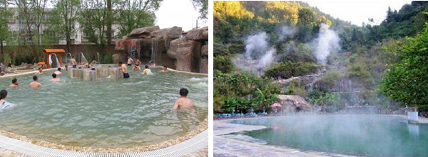 熱水溫泉地處老圖山脈東緣山麓,分布面積為0.42平公里,日最大可采儲量1800~2100噸,中心孔深503米,自流水溫高達(dá)當(dāng)?shù)胤悬c97℃,是全國水溫最高的溫泉之一。泉水中含有碳酸氯鈉、硫化氫、二氧化硅、氡、氟、碘、硼、銅、銀、鉀、鈦、鈄、鎂、鋰、鈣等卜幾種化學(xué)物質(zhì)及微量元素,對神經(jīng)衰弱、高血壓、糖尿病、皮膚病、胃病、布氏桿菌癇、多發(fā)性神經(jīng)炎、增生性脊柱炎、氣管炎等30多種常見疾病有很好的療效和較強的保健作用。