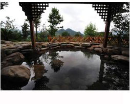 貴州黃平浪洞溫泉風景黃平浪洞森林溫泉度假山莊位于貴州省黔東南州黃平北面浪洞鄉(xiāng)溫水塘村,處于兩州一市交界(黔東南州、黔南州和遵義市),更是處在舞陽河國家級風景名勝區(qū)范圍內(nèi),具有較好好區(qū)位優(yōu)勢。四周依山傍水,原始植被保存良好,是天然的氧吧。浪洞溫泉在100平方米范圍內(nèi)由5~7年泉眼平地,噴涌而出,日流量每天1000噸左右。溫泉無色,甜味,井口水溫49℃,根據(jù)SI02含量計算,推測靠巖面附近溫度可達60℃,按國家礦泉水溫度分類標準,為高熱礦泉水(42-100℃)。該溫泉地熱水化學類型為HCO3-NA,屬弱堿性(PH=8),低硬度、低礦化度的極軟水,符合飲用水標準。
