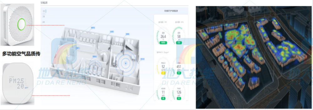 在典型大空間區(qū)域或其他人員長期密集、空氣品質(zhì)要求較高部位,設(shè)置PM2.5、甲醛、VOC等室內(nèi)污染物濃度監(jiān)測點,當污染物濃度超標時,進行超標報警;若甲醛、VOC等濃度超標,可加大新風(fēng)量,提高室內(nèi)健康度,確保用戶對于室內(nèi)環(huán)境問題都完全知情、定位準確、處置過程在線可控,給全民提供一個舒適的工作和學(xué)習(xí)環(huán)境。